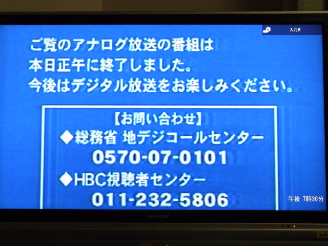 そんなわけで、アナログ放送終了のおしらせ。